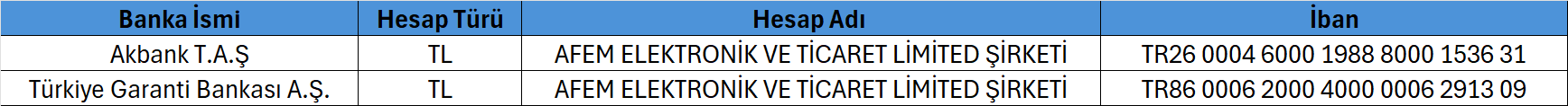 Banka Hesap Bilgileri